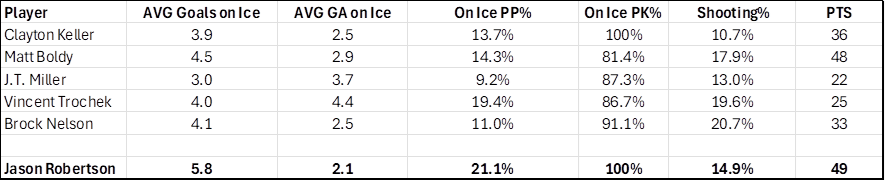 Robertson doesn’t spend much time killing penalties, but he is not a defensive liability. His speed, agility, and quick processing of information allow him to maintain positioning when focusing his attention on defending opposing teams’ offensive attacks. Regardless of primary position, evidence suggests Robertson does not lack a considerable amount of defensive abilities than Brock Nelson or Clayton Keller.