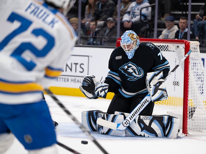 Utah Mammoth goaltender Karel Vejmelka (70) watches the puck as it moves to his back and side as the Mammoth and St. Louis Blues play at the Delta Center in Salt Lake City on Friday, Jan. 9, 2026. | Scott G Winterton, Deseret News