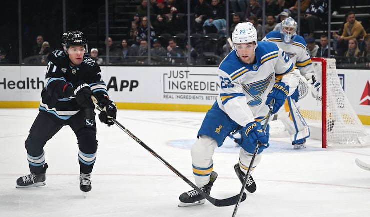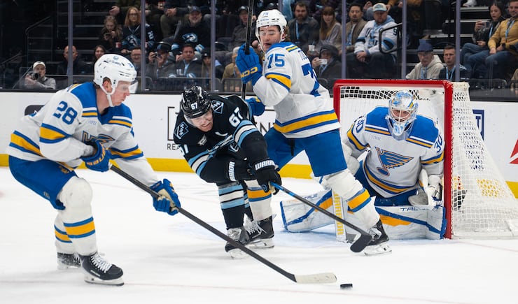 The last time the Mammoth and Blues met, Blues forward Alexey Toropchenko got a major penalty and a game misconduct for kneeing Logan Cooley. Because Toropchenko got kicked out of the game, the Mammoth didn’t have the chance to respond.