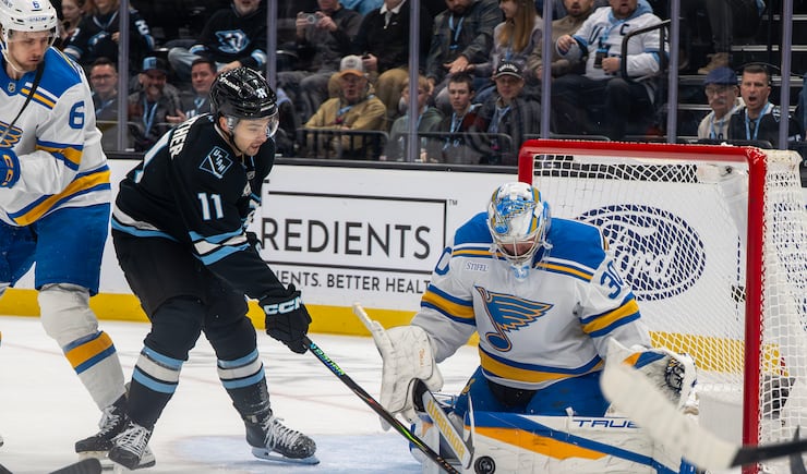 This was one of Utah’s chippier games of the season: Two fights, 42 hits and 42 penalty minutes between the two teams. It was the third meeting between the Mammoth and the Blues this season, and it became clear early that they don’t like each other.