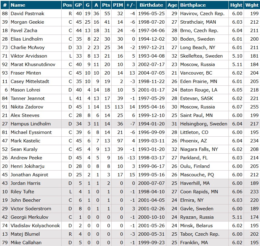 Murat Khusnutdinov – Elias Lindholm* – David Pastrnak