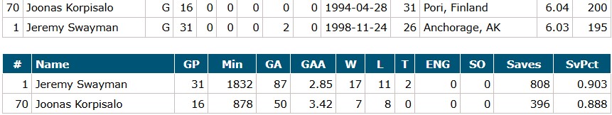 Goalies: Joonas Korpisalo (Jeremy Swayman played yesterday)