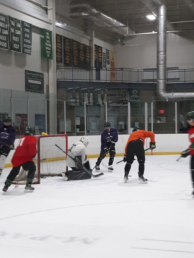 The Alpena Wildcats hockey team practices Friday at the Northern Lights Arena.