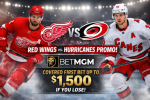 Start your week with some intense NHL action as the Red Wings and Hurricanes square off at the Little Caesars Arena. You can make the most of the occasion by signing up for BetMGM’s welcome offer. All you need is to register for a legal sports betting account and wager up to $1,500 on your first play. If your bet falls short, you’ll receive a full refund in bonus bets.