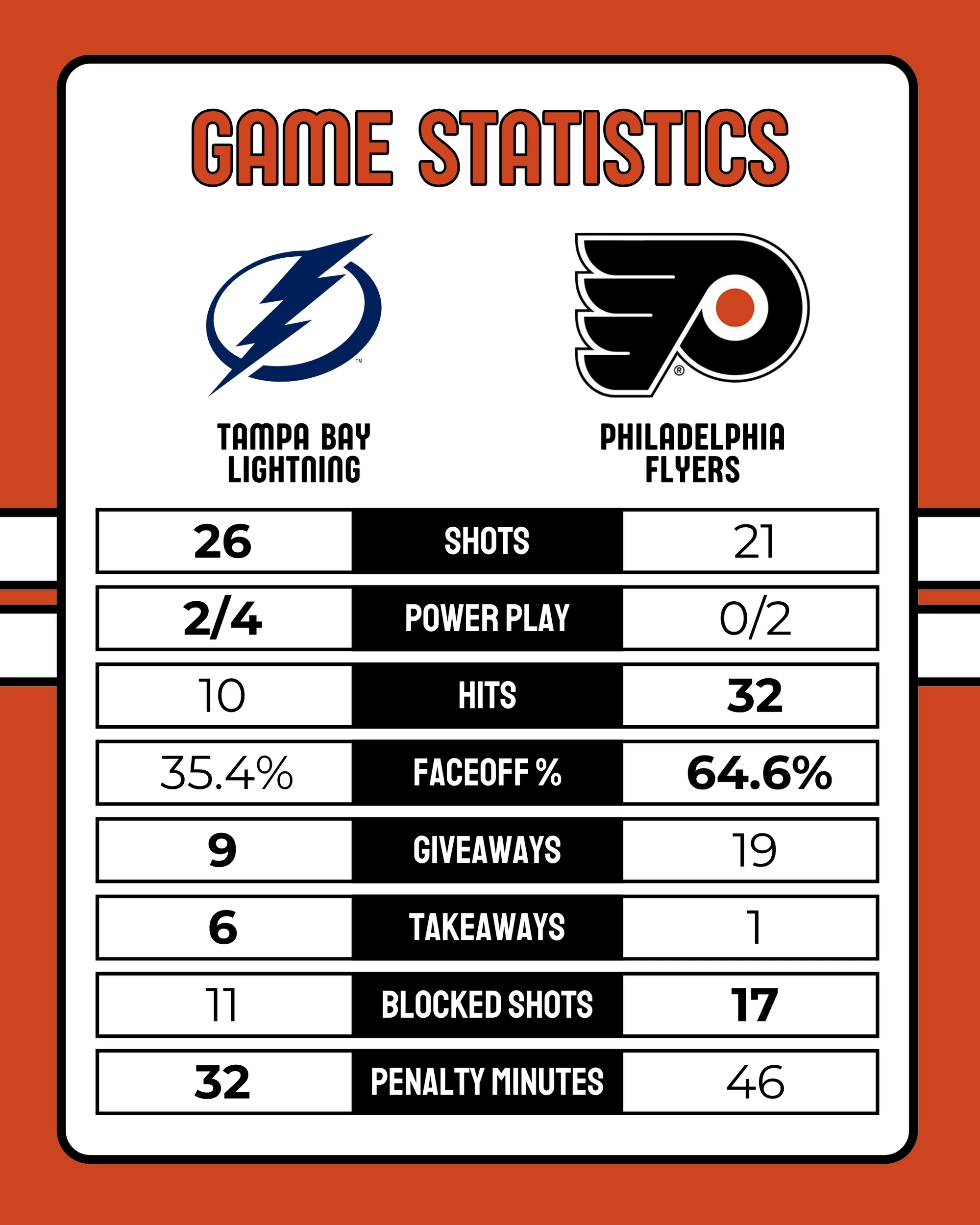 Flyers-Lightning Box Score 1-12-2026Flyers-Lightning Box Score 1-12-2026Flyers-Lightning Game Statistics 1-12-2026Flyers-Lightning Game Statistics 1-12-2026Video Recap