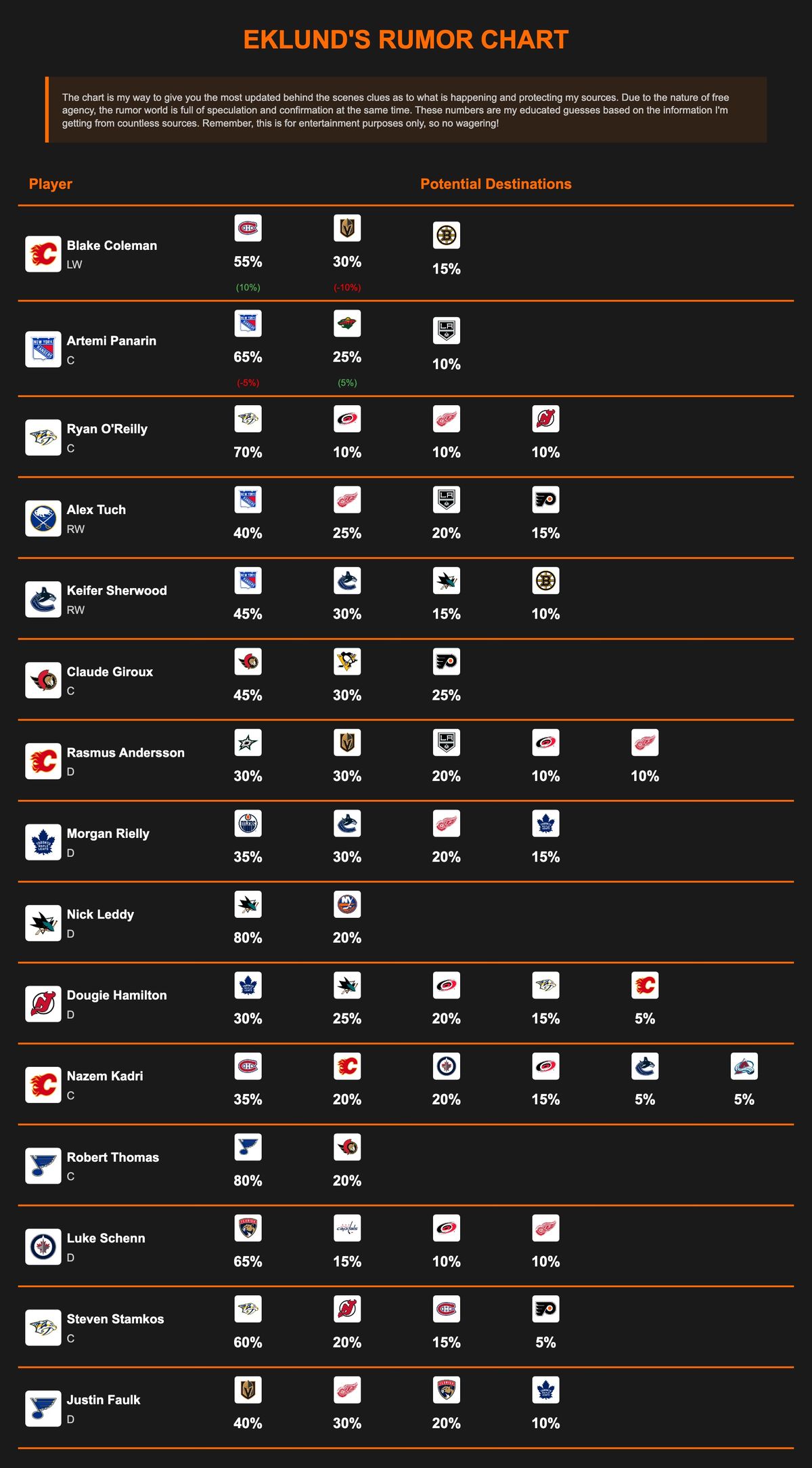 I’ll be updating the chart throughout the day, and whenever I do, I’ll post a new rumor track for everyone to see on the blog… I’ll also be discussing any changes I make… For the first time, you’ll be able to follow along live as updates happen, and that should be a lot of fun…