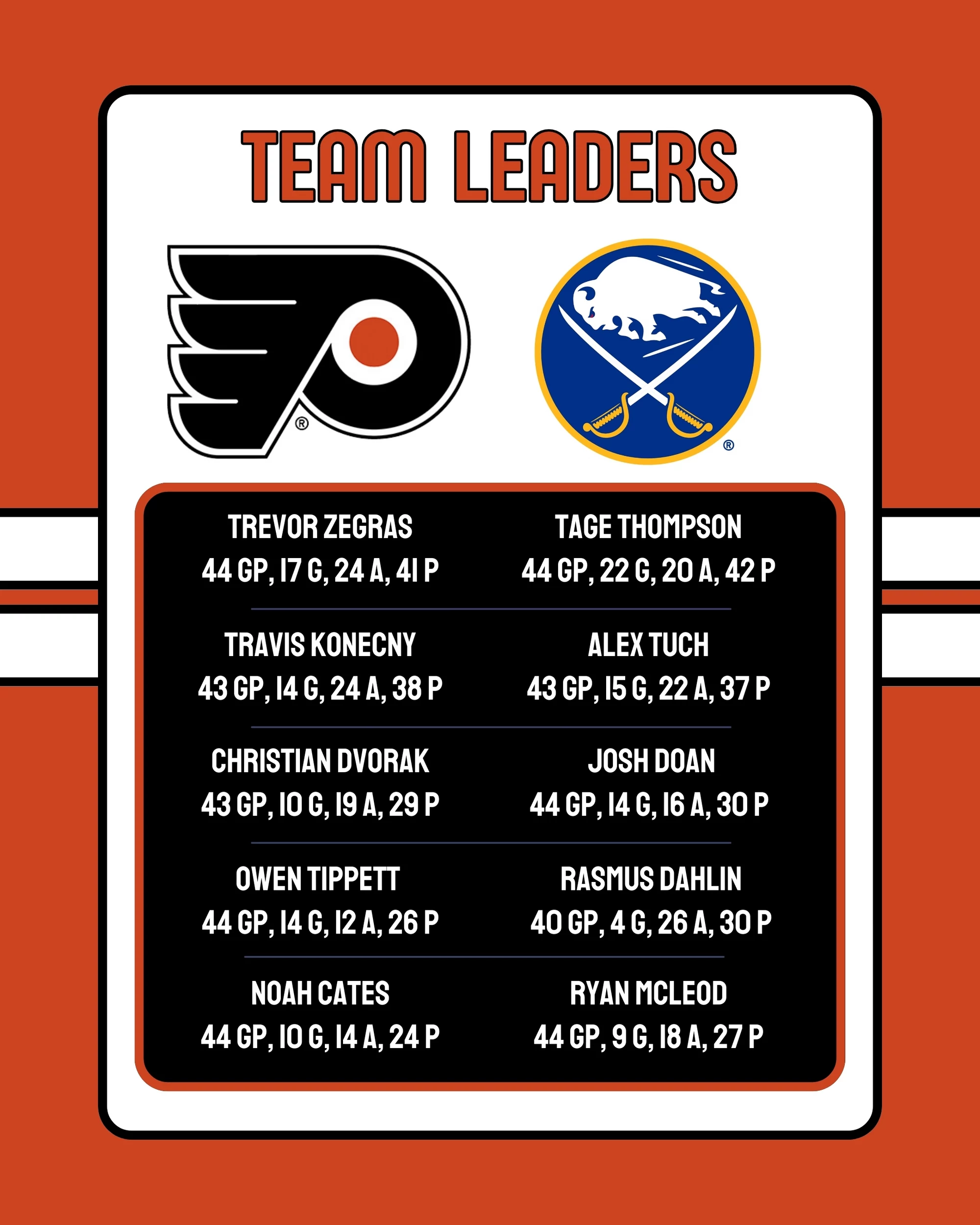 Flyers-Sabres Team Leaders 1-14-2026Flyers-Sabres Team Leaders 1-14-2026Flyers-Sabres Players to Watch 1-14-2026Flyers-Sabres Players to Watch 1-14-2026
