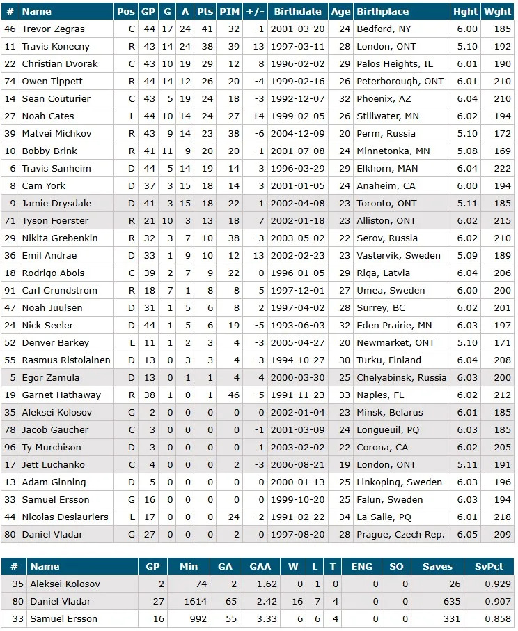 Goalies: Samuel Ersson (Dan Vladar played yesterday, and got hurt)