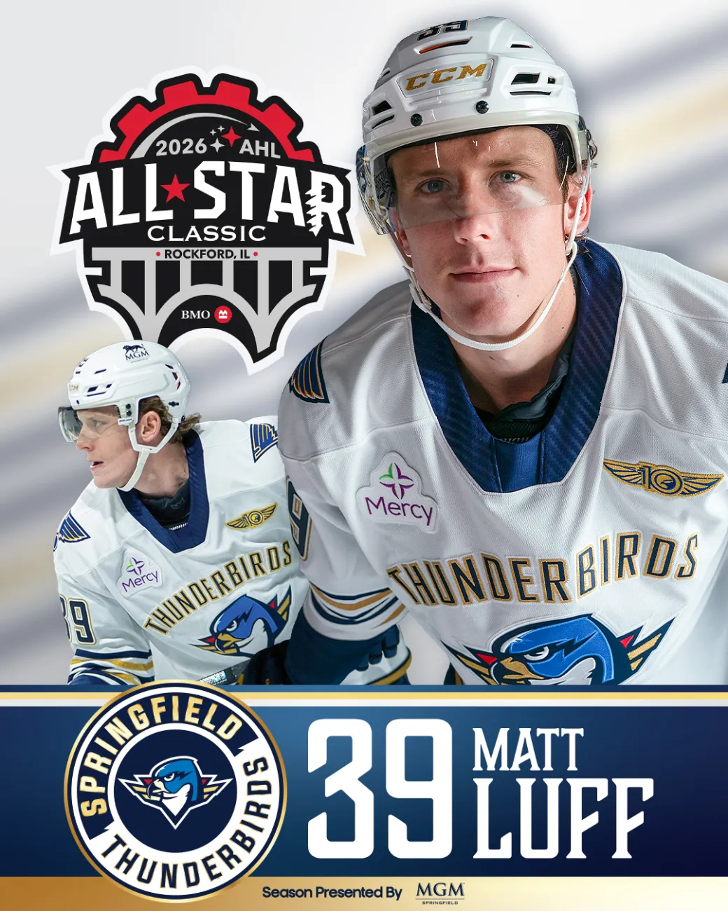 SPRINGFIELD, Mass. – The American Hockey League has announced the rosters for the 2026 AHL All-Star Classic presented by BMO. The Thunderbirds will be represented in Rockford, Ill., by veteran winger Matt Luff.
