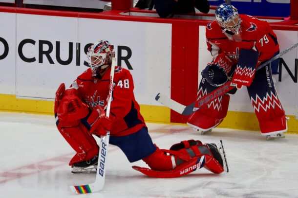 Logan Thompson sports Pride Tape on his stick during warmups. (Photos by Caps Outsider)