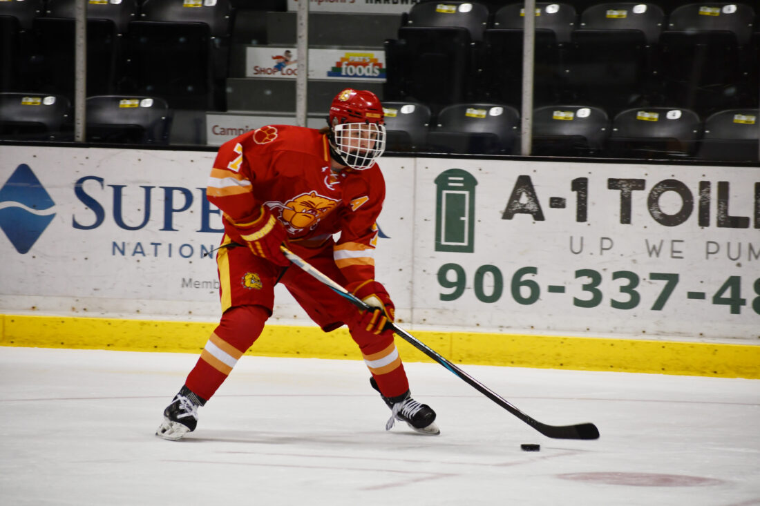 It took less than a minute for the Bulldogs to strike. Alternate captain Kirby Storm scored on a wrist shot from the slot over Kasen Helminen’s glove at 6:24. Then, 2:04 later, he scored a second goal from a very similar spot.