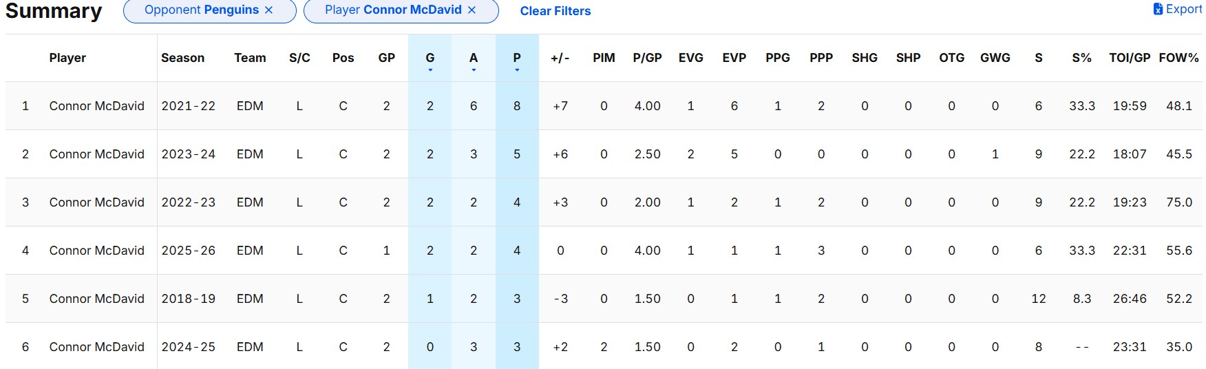 Maybe begging Connor McDavid to stop picking on the Penguins will help? Nothing else has worked, aside from the 2020-21 season when there was no PIT/EDM games due to the scheduling format. His stat-line against the Pens in the last six years is just disgusting.