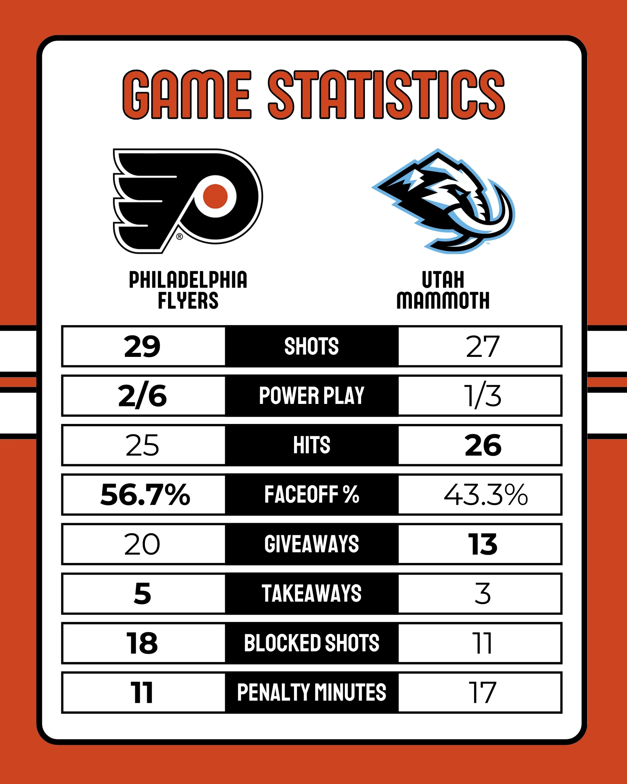 Flyers-Mammoth Box Score 1-21-2026Flyers-Mammoth Box Score 1-21-2026Flyers-Mammoth Game Statistics 1-21-2026Flyers-Mammoth Game Statistics 1-21-2026