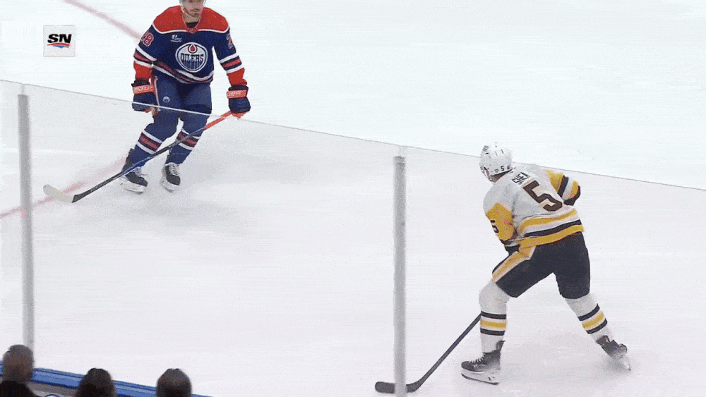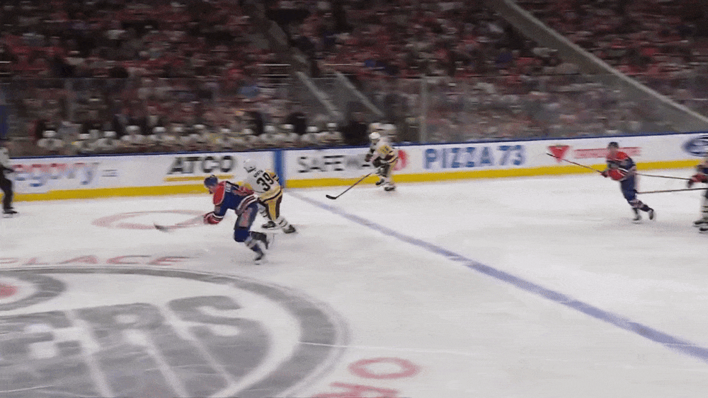 The game settled down after Crosby’s goal, and the Oilers started to push. But late in the period it was the Penguins’ defensemen who showed that they came ready to play too, stepping up with plays like Parker Wotherspoon’s save at the goal line or Jack St. Ivany’s massive blocked shot against the Oilers’ top-ranked power play.