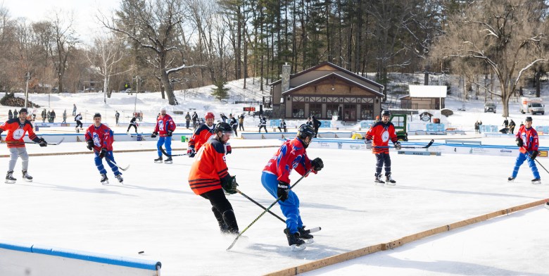 Hockey players of all ages hit the ice on a cold Friday morning for the first day of the Black Ice Pond Hockey tournament.