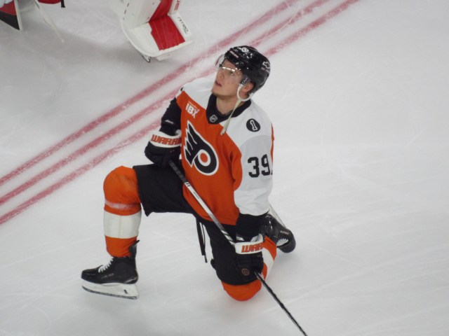 Flyers goaltender Samuel Ersson got his 3rd consecutive start in the Flyers net as they played the final match of their three game road swing against the best team in the NHL. Ersson’s confident glove crisply snapped up the first Colorado shot on goal. A good sign.