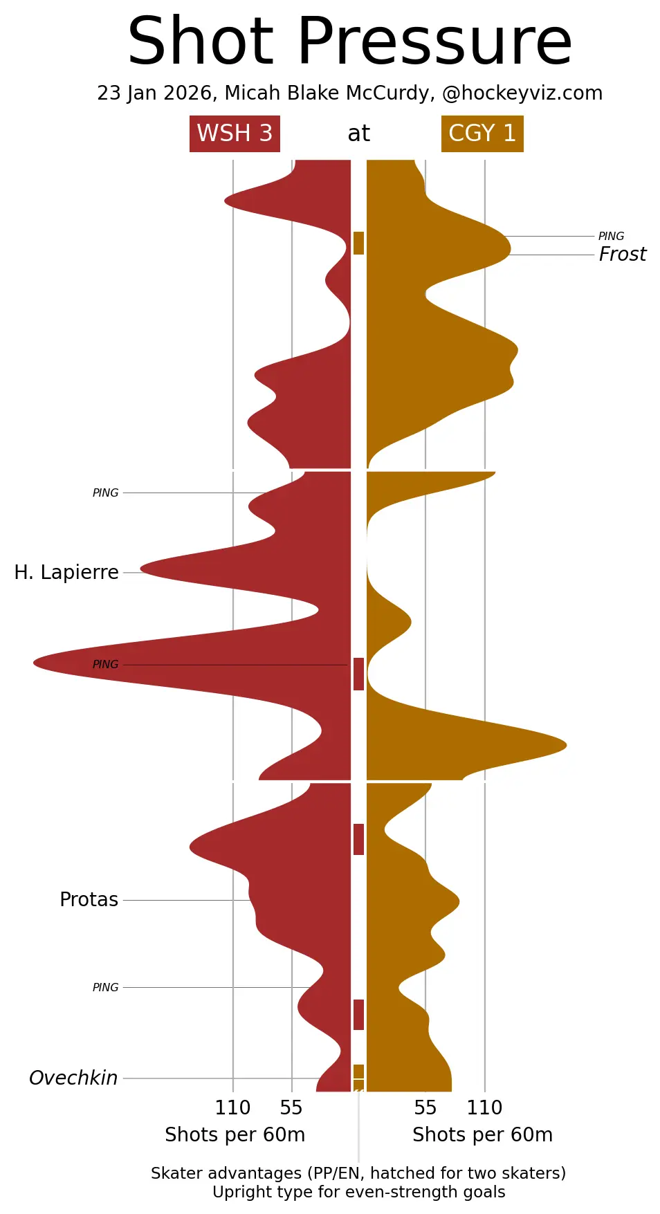 (Stats compiled from Naturalstattrick.com // Game Score from Hockeystatcards.com // xG and Under Pressure charts from HockeyViz.com // Game Flow and Shot Heatmap from NaturalStatTrick.com)