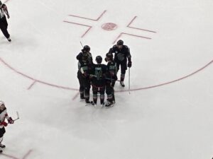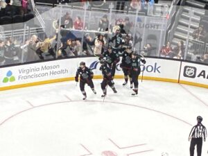 Seattle broke the ice in the second period when Ryker Evans at 7:37 snuck a shot by Devils goaltender Jacob Markstrom to tie the game.