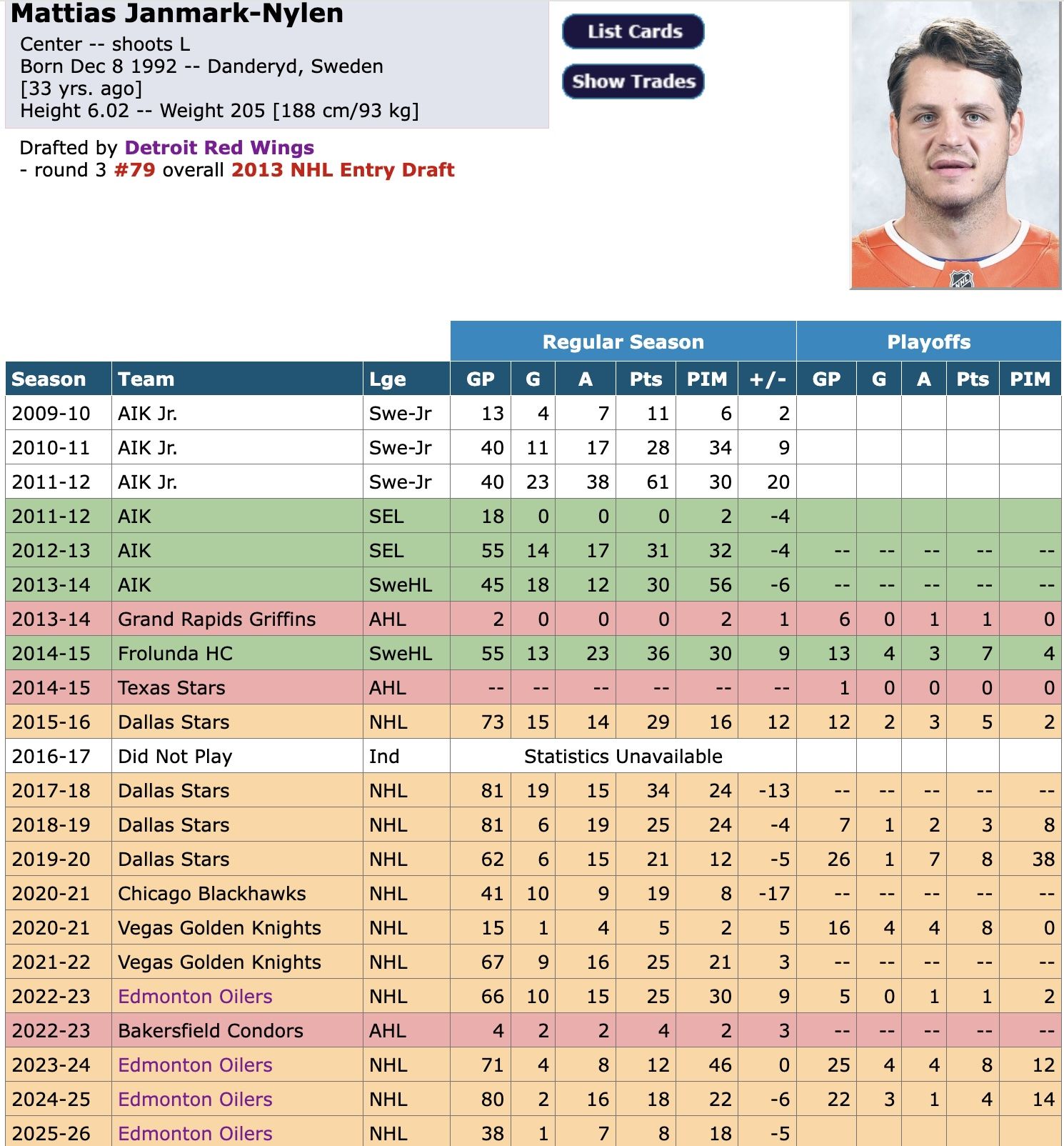 Janmark has for many years been a strong penalty killer in the NHL. He and his teammate Connor Brown become Edmonton folks heroes for their historically brilliant work on the PK in the 2024 playoffs. But Janmark’s overall game and his PK game have both fallen off dramatically since that great run, which saw him then sign a three-year deal at $1.45 million per season.