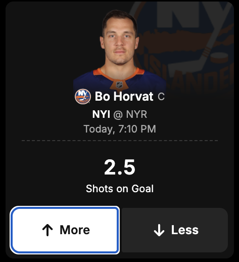 DraftKings Network projection: 56% likely to have MORE than 2.5 Shots on Goal
