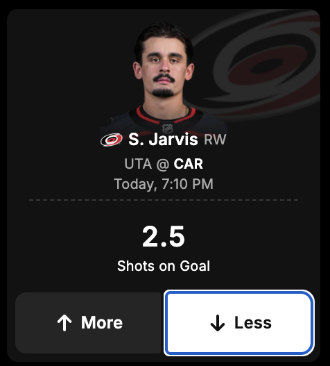 Seth Jarvis Shots on Goal