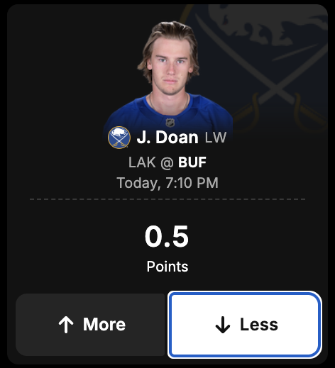 DraftKings Network projection: 55% likely to have LESS than 2.5 Shots on Goal