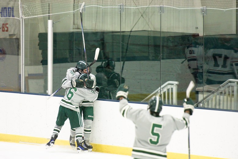 With 2:39 remaining in regulation, junior Colin Morlock ripped a shot past Palazzo to bring his team within one.