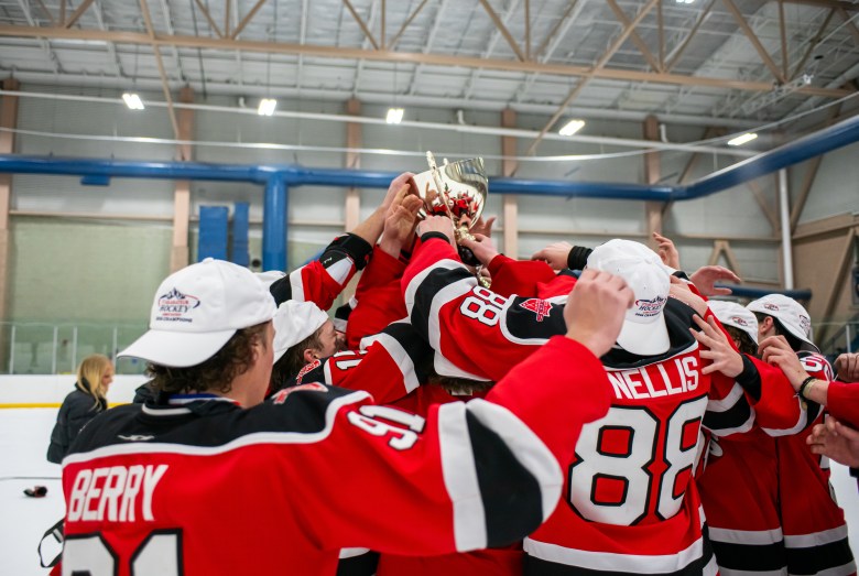 Park City found out at their team dinner on Tuesday night that the win on Wednesday wouldn’t secure them their bid to the national championships, to be held in Minnesota later this winter, as it did last season. The Miners Red will need to defeat the state champion of the school-unaffiliated division, which Sky Canyon and DCI will play for on Monday night. Sky Canyon had a chance to win the title on Wednesday, taking the ice against DCI following Park City’s win, but fell 8-7. The school-unaffiliated playoff bracket is also double elimination, and Sky Canyon hadn’t lost until Wednesday.