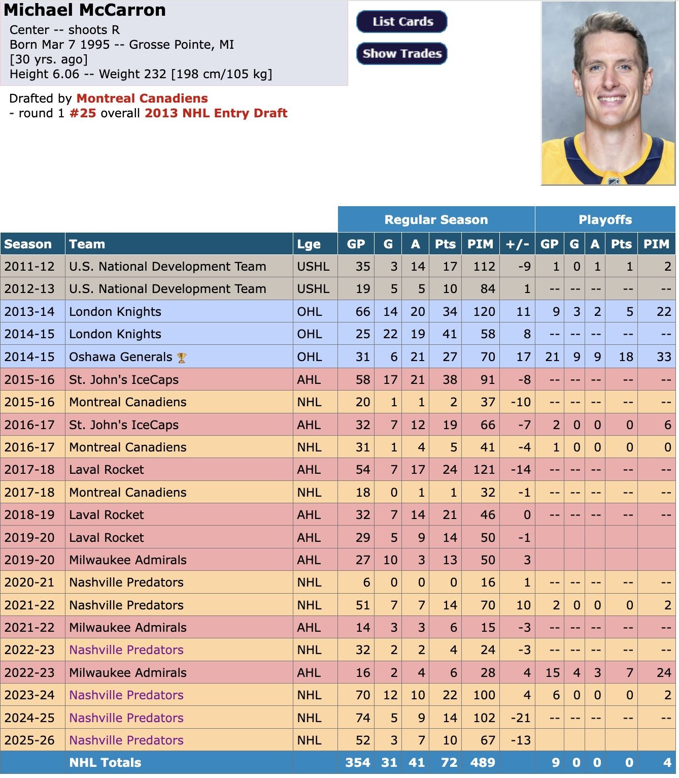 1. Bob Stauffer of Oilers Now has talked repeatedly about the Oilers looking to bring in a big, fast Top 9 forward. McCarron does not qualify as a Top 9 forward. Bunting does, and he’s also an aggressive player, but at 6-feet, 186 pounds he’s not that big. He’s also expensive. Even if Nashville were to retain on his contract, could Edmonton find the cap space to bring him in?