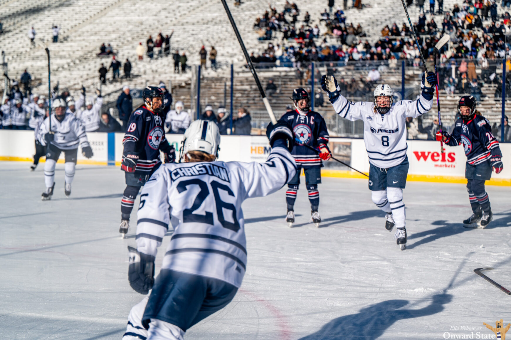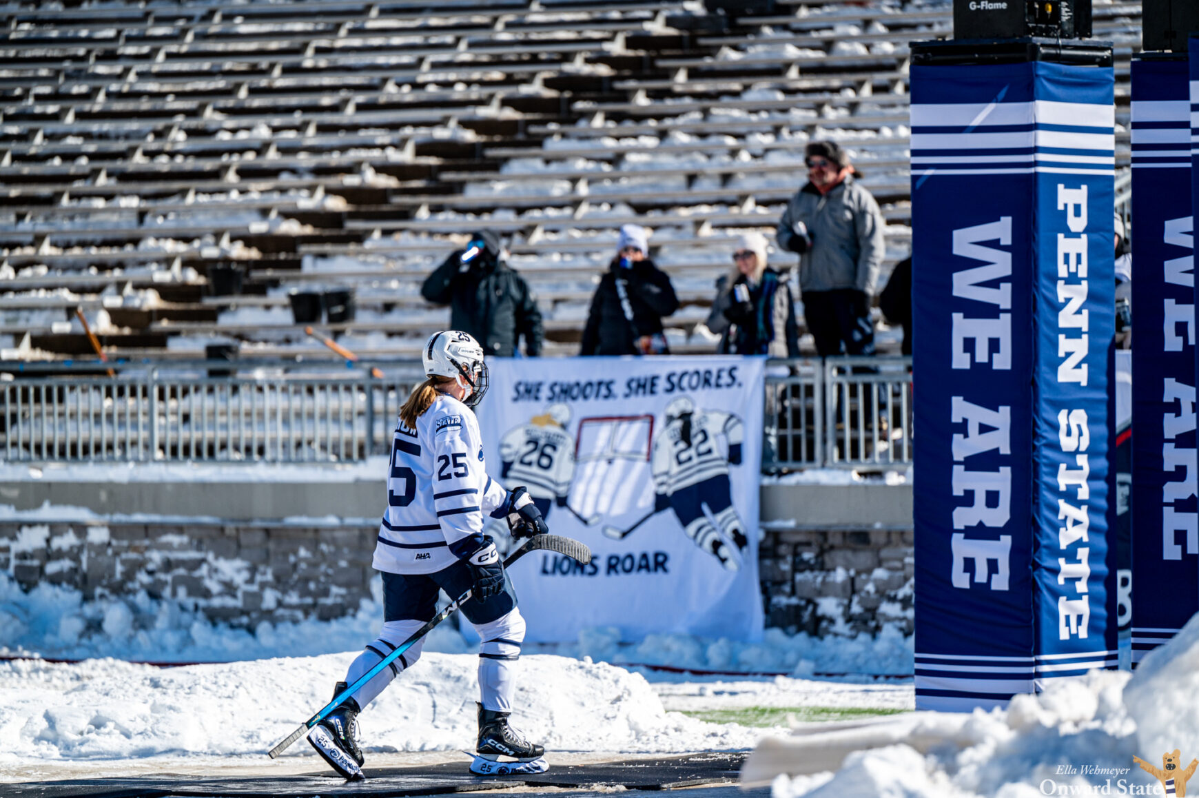 The crowd showed up despite below-freezing temperatures for the first Division I hockey game played at Beaver Stadium. With 1,838 fans in attendance, Penn State women’s hockey recorded its largest crowd in program history.