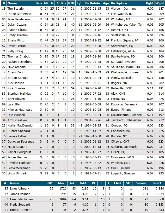 Ottawa’s an interesting team in that they’ve put the pieces together with several high draft picks, now it should be time to see what they can do. They’re not exactly young-young for an NHL team (everyone is 23+) and almost all of their core (Tkachuk, Batherson, Chabot, Sanderson, Stutzle) has all been around and together for 4-5-6 seasons now in a lot of cases. It looked like they might have been turning the corner when they qualified for the playoffs last year for the first time since Chris Kunitz bounced them in 2017, but it’s been right back down this season so far.