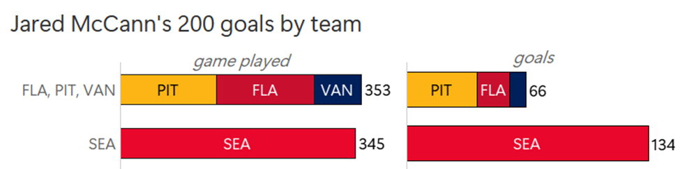 Jared McCann scored his 200th career NHL goal on Saturday against Vegas. Given how good he’s been since joining Seattle, 200 feels low, but that’s because he’s essentially doubled his career goal total in roughly the same number of games he played elsewhere.