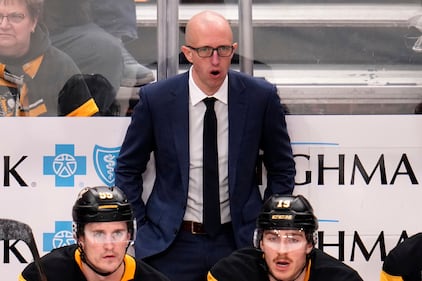 Senators Penguins Hockey Pittsburgh Penguins head coach Dan Muse stands behind his bench during the third period of an NHL hockey game against the Ottawa Senators, in Pittsburgh, Monday, Feb. 2, 2026. (AP Photo/Gene J. Puskar)