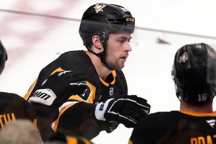 Senators Penguins Hockey Pittsburgh Penguins’ Egor Chinakhov returns to the bench after scoring during the first period of an NHL hockey game against the Ottawa Senators in Pittsburgh, Monday, Feb. 2, 2026. (AP Photo/Gene J. Puskar)