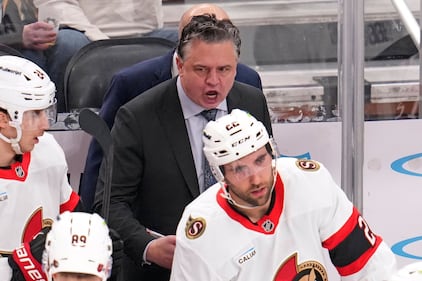 Senators Penguins Hockey Ottawa Senators head coach Travis Green gives instructions during the third period of an NHL hockey game against the Pittsburgh Penguins in Pittsburgh, Monday, Feb. 2, 2026. (AP Photo/Gene J. Puskar)