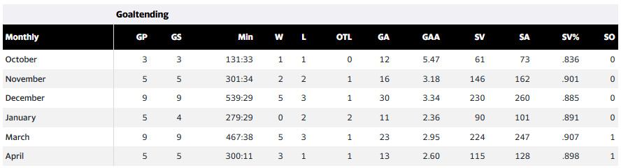 March and April salvage this chart quite a bit, but boy it’s a sad, sad tale for Jarry in a season that featured two banishments to the AHL.