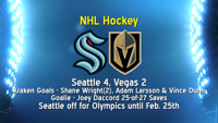 Seattle and the rest of the NHL will take a three-week break during the Winter Olympics. Seattle’s next game following the Olympics will be February 25th at Dallas.