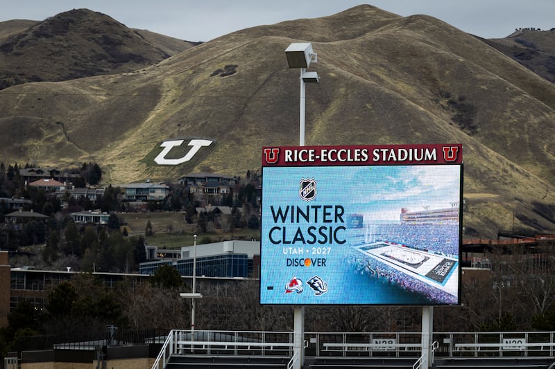 Signage for the National Hockey League’s 2027 Winter Classic is displayed before a press conference held by the Utah Mammoth and the NHL at Rice-Eccles Stadium in Salt Lake City on Wednesday, Jan. 7, 2026. | Isaac Hale, Deseret News