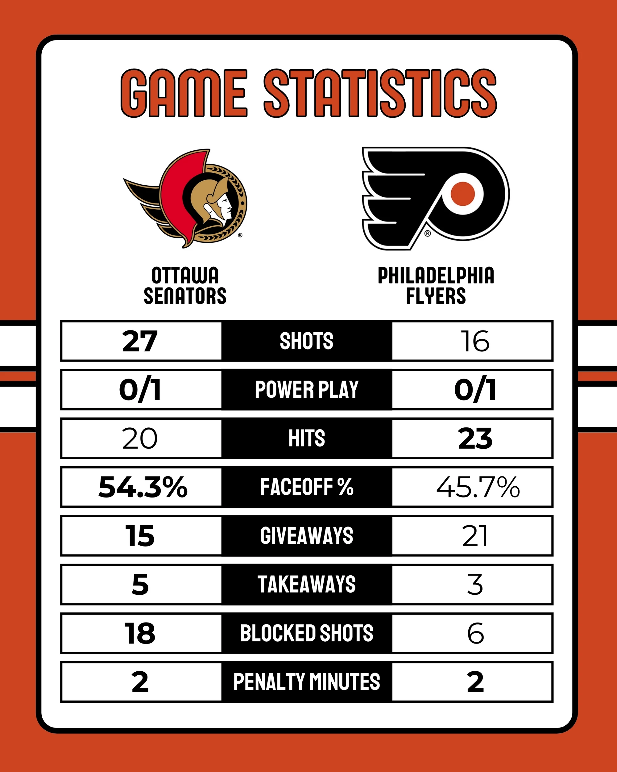 Flyers-Senators Box Score 2-5-2026Flyers-Senators Box Score 2-5-2026Flyers-Senators Game Statistics 2-5-2026Flyers-Senators Game Statistics 2-5-2026Video Recap