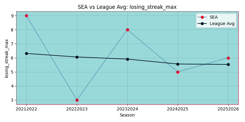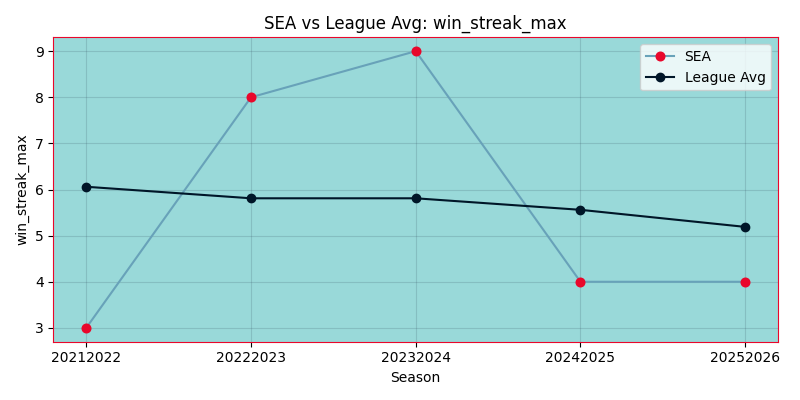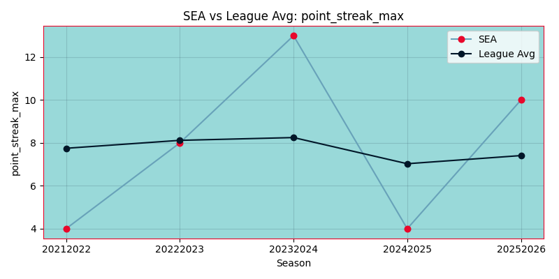 The Kraken currently sit at a 0.68 balance ratio and are trending toward 67 total streak games. That would place them in the High streakiness tier.