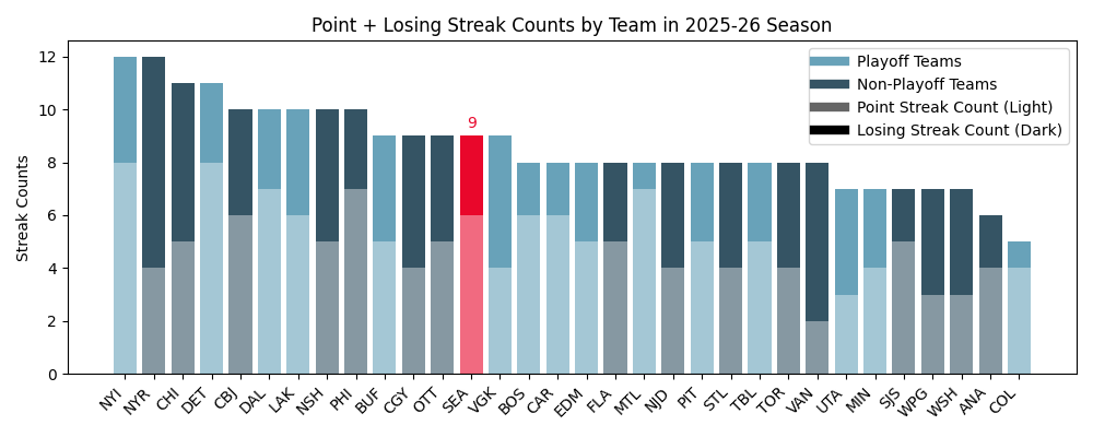 Streakiness only becomes an issue when losing streaks pile up. As long as the Kraken keep their balance ratio at or above 0.68, they are positioning themselves to qualify and avoid the most difficult first-round matchups.