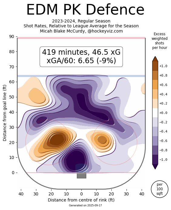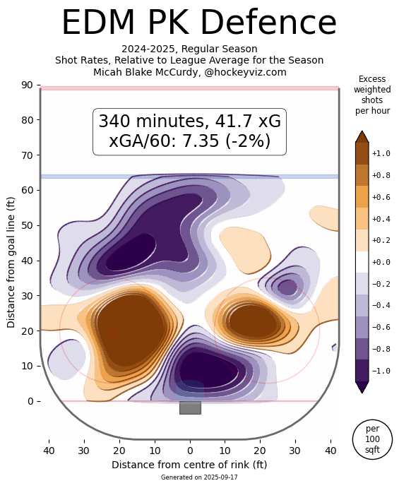 Again, though the penalty kill was just… mid. Sure, it had an insane run in the playoffs where they finished first with a 94.3% rate, and had a GF% of 25 (3–4) which is just unheard of, but, it seems more than anything it was just a flash in the pan. The Oilers group still finished 15th in the regular season in this area. At least, this time around, they had a much better time with clearing and preventing the HD chances.