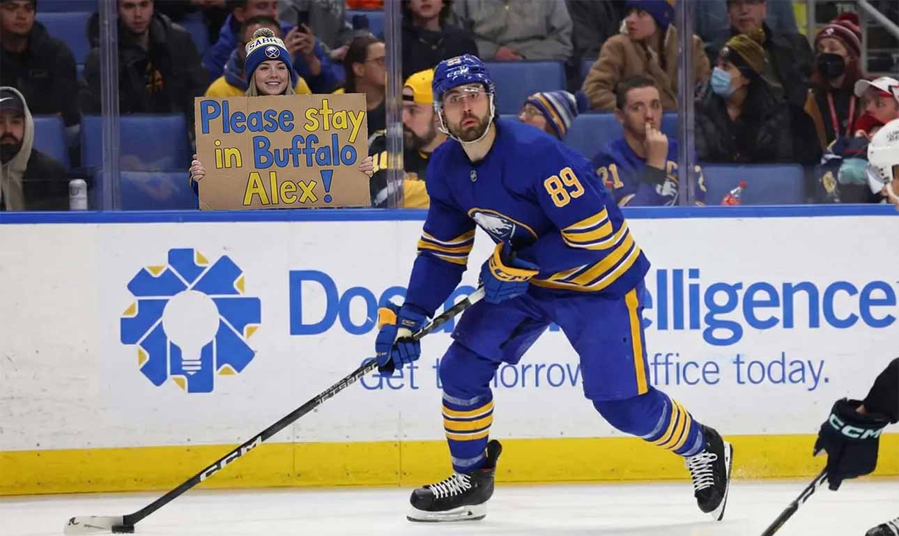 A Buffalo Sabres fan makes her feelings known during a recent game, holding a sign imploring star forward Alex Tuch to re-sign with the team amidst reports of a significant gap in contract negotiations. Tuch is reportedly seeking a long-term deal with an average annual value exceeding $10.6 million.