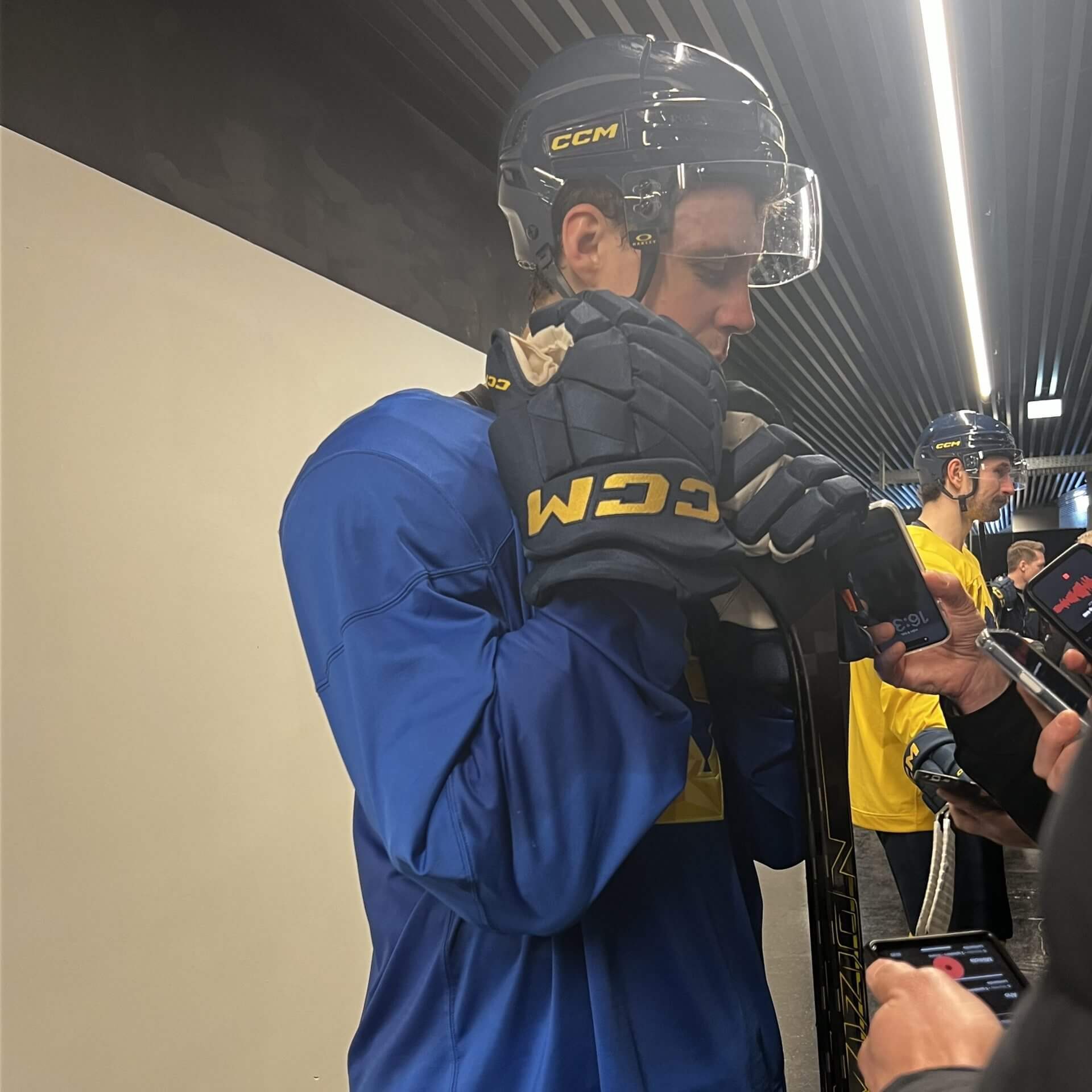 “We’d have like our normal lessons and then Sweden would play, and we’d pause the class to watch the games,” Wallstedt said. “That was the first memory I have. As a goalie nerd, I remember (Henrik) Lundqvist’s pads in Sochi, the first one with his new technology, where it was just one layer or sheet on the outside of the pad where you could put whatever you want on it.”