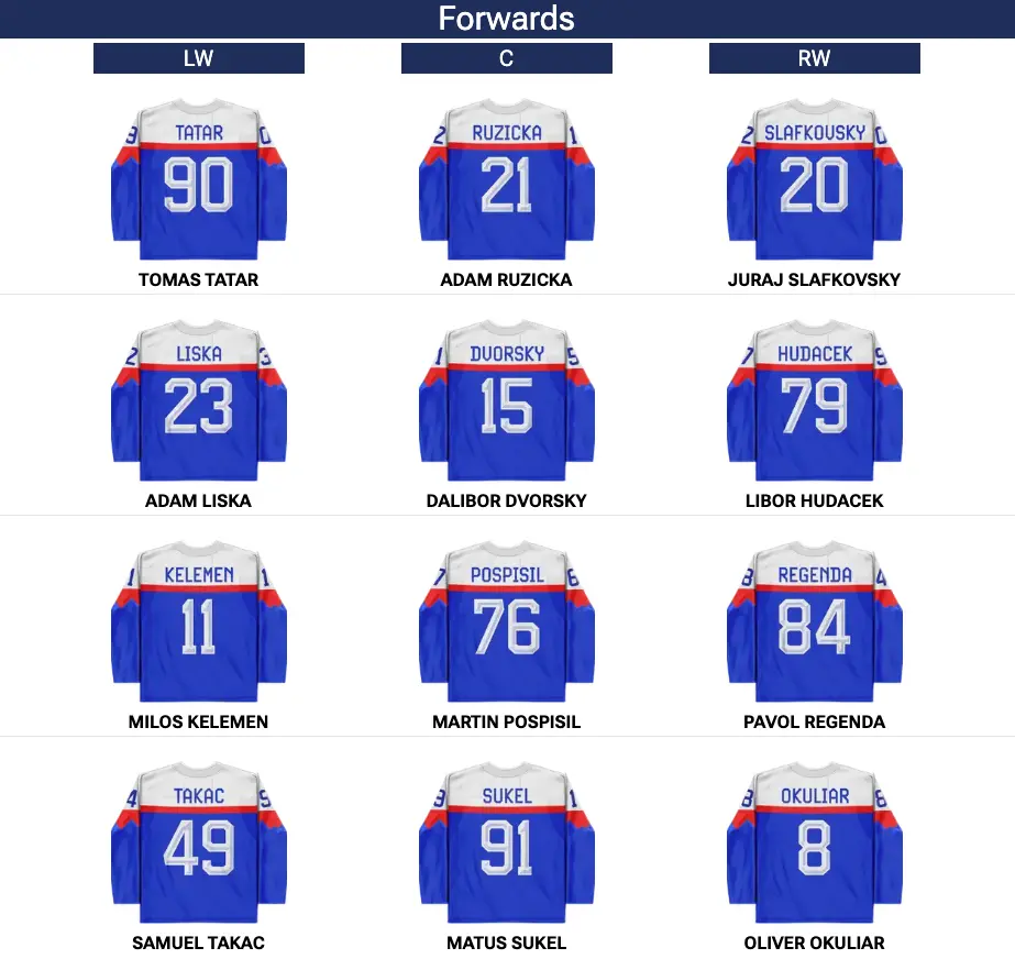 The Slovaks have yet to announce a starter. Expect one of Adam Gajan (21-year-old Chicago Blackhawks prospect) or Samuel Hlavaj (24-year-old goaltender for the Iowa Wild)
