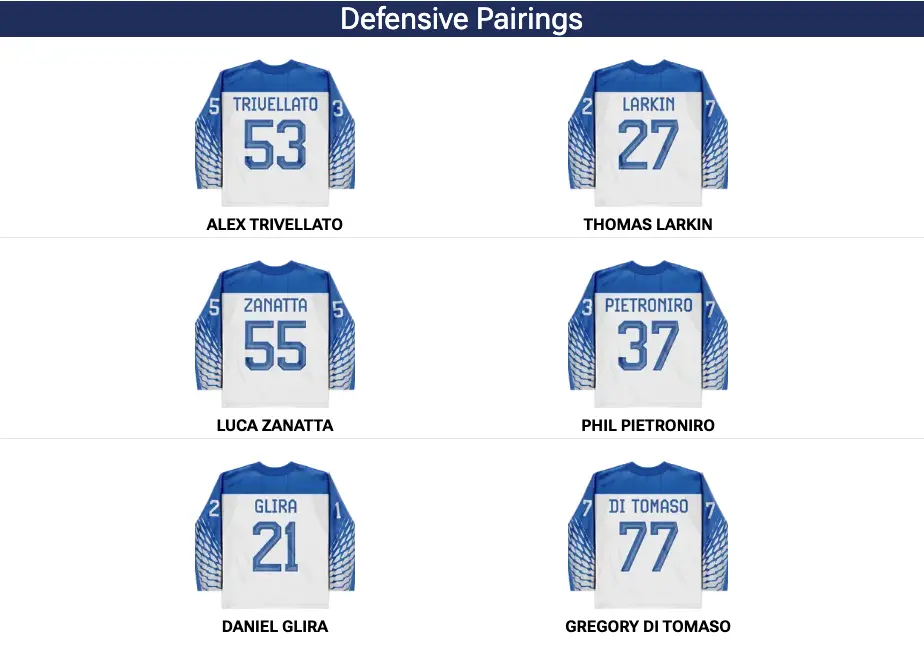 Damian Clara: Although we aren’t sure whether he will get the start tomorrow, Damian Clara is someone to watch closely on an Italian team that isn’t rich with talent, because he is the only Italian-born player on the team that was ever drafted to the NHL – in the second round, 60th overall, to boot. He’s just a young kid, but as the clear best player on the team, and going up against one of the tournament favourites, he should be a busy guy in front of his country.