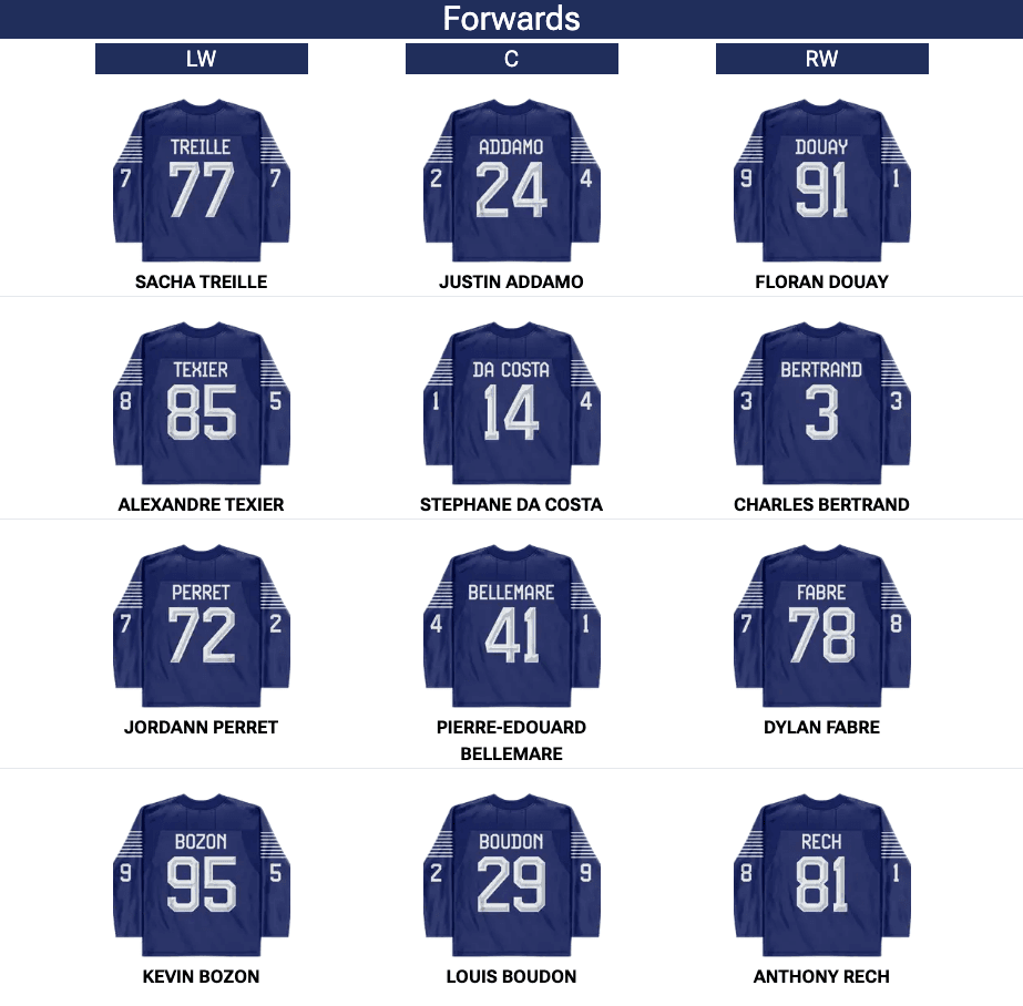 *Note. Teams start an extra forward (13) and defenceman (7) per game. The fourth pairing is the extra forward and defenceman.