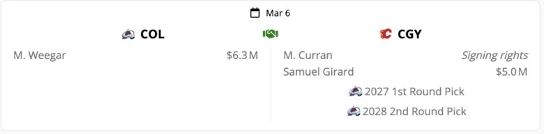 Mackenzie Weegar’s name has floated around trade speculation leading up to the break. In the past, we’ve heard Weegar say he is committed to Calgary. Recently, we haven’t heard one way or another. It’s not that he is dodging the question; it just hasn’t been directly brought up with the front-facing media. Should the Flames consider trading Weegar, I don’t think they are taking a 27 LHD, Sam Girard, but those two first-round picks would be a fantastic addition for the rebuilding team.But is this enough for Weegar, who is beloved in the room and by the fanbase?