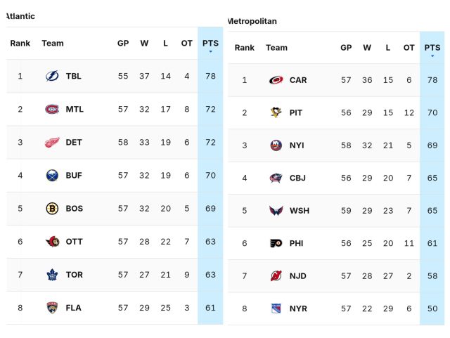 The Sabres are in the first wildcard position and remain in good position to move into one of the division berths too. Buffalo have three games this week as the campaign picks up steam.
