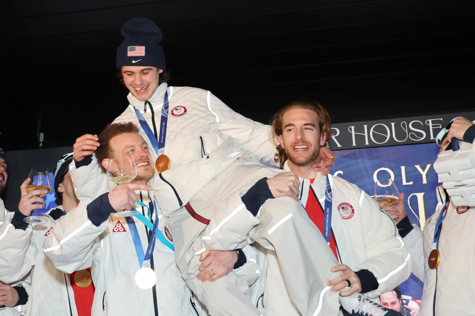 Hughes, gracious but obviously tired, said he was happy to be back and was ready to party again after spending the last night in the Olympic Village basking in the victory.